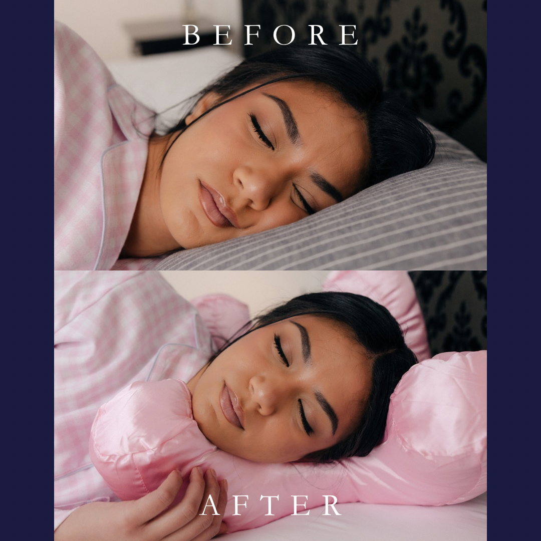 Traditional pillows push, pull, and squash your skin and hair for hours every night. The Overnight Glam Pillow is shaped to do the opposite - supporting side sleepers while helping keep skin smooth, lashes intact, and hair healthier over time.